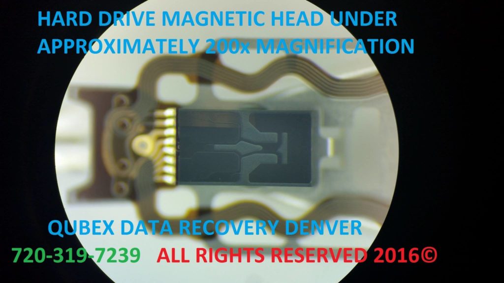 Western Digital My Passport damaged head with dust, this is what happens when heads are touching surface and scraping it. 200x zoom.